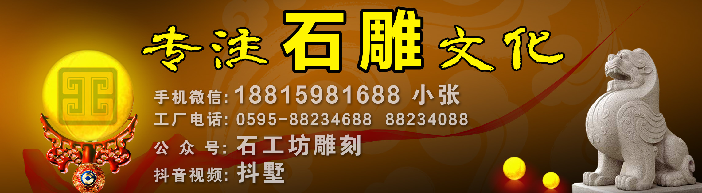石工坊雕刻,位于素有中國(guó)石雕之都美稱(chēng)的福建省泉州·惠安[點(diǎn)擊了解惠安石雕]。我們以傳承石雕工藝、弘揚(yáng)中華文化為已任,網(wǎng)絡(luò)和聚集了一大批專(zhuān)業(yè)的雕刻和設(shè)計(jì)人才。長(zhǎng)期從事石雕設(shè)計(jì)雕刻和施工安裝。特別是園林景觀(guān)雕塑、寺廟古建雕刻及歐式建材雕刻等石頭雕刻工程。如動(dòng)物雕塑、人物雕像、景觀(guān)浮雕墻、石雕照壁、石欄桿、石牌坊、石亭子、石塔等。